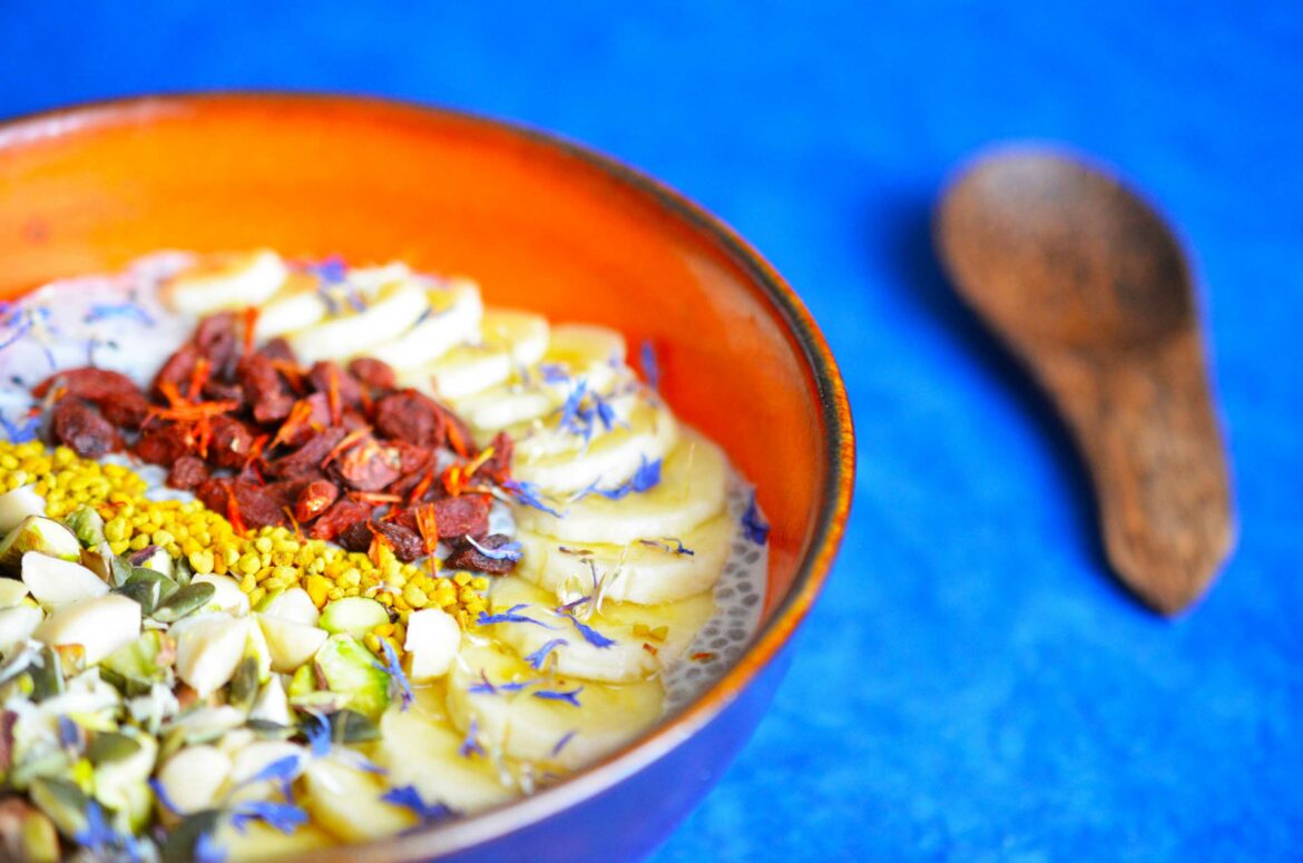 Ce bol facile et rapide à préparer se décline à volonté, en variant les laits végétaux, en ajoutant vos fruits préférés et en mixant les super-aliments (açaï, maca, spiruline, cacao cru, cannelle, curcuma, gingembre, lucuma, noix en tout genre… ).